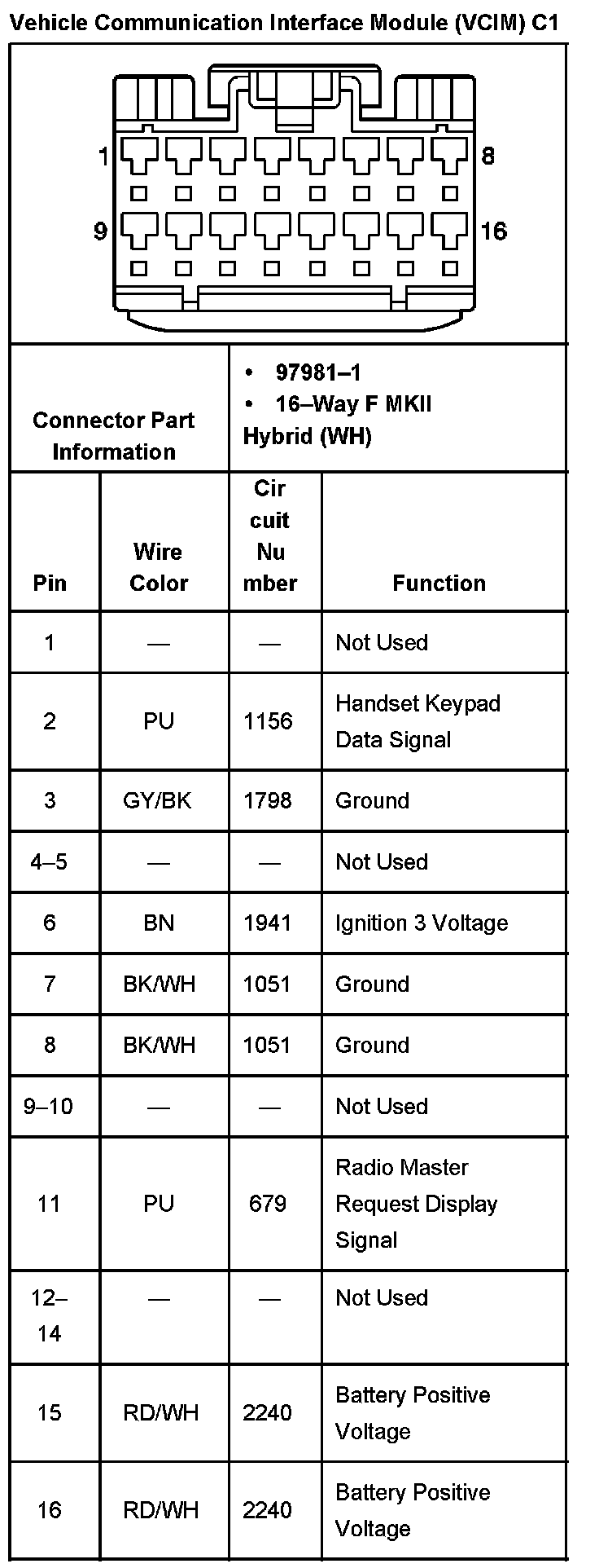 Vehicle Communication Interface Module (VCIM) C1: