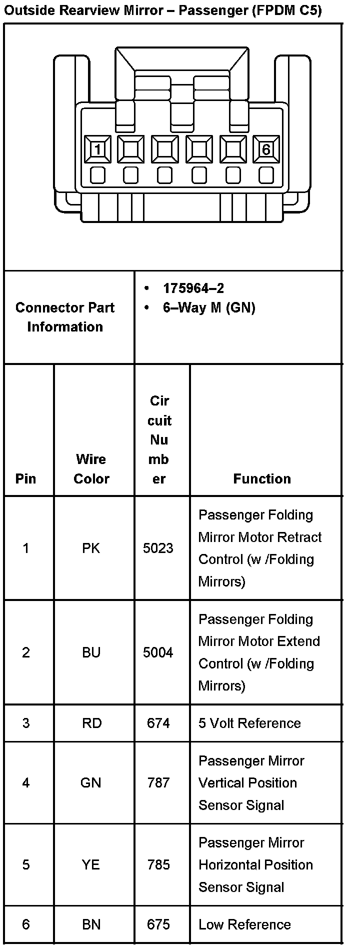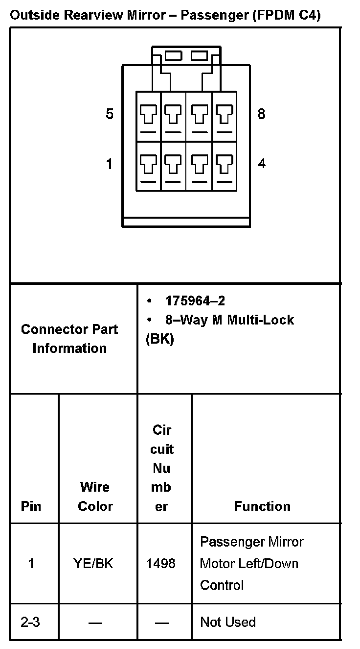 Outside Rearview Mirror Passenger (FPDM C4) Part 1: