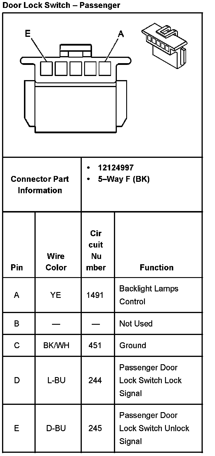 Door Lock Switch - Passenger: