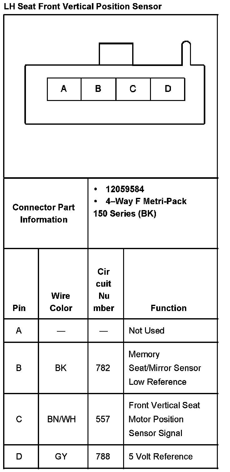 LH Seat Front Vertical Position Sensor: