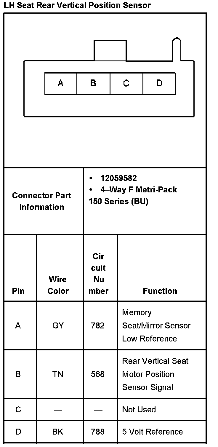 LH Seat Rear Vertical Position Sensor: