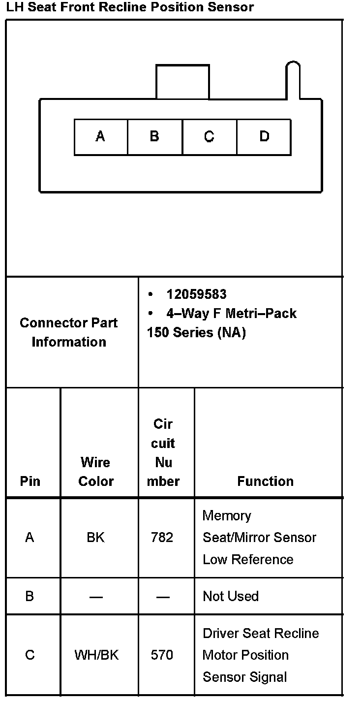 LH Seat Front Recline Position Sensor:
