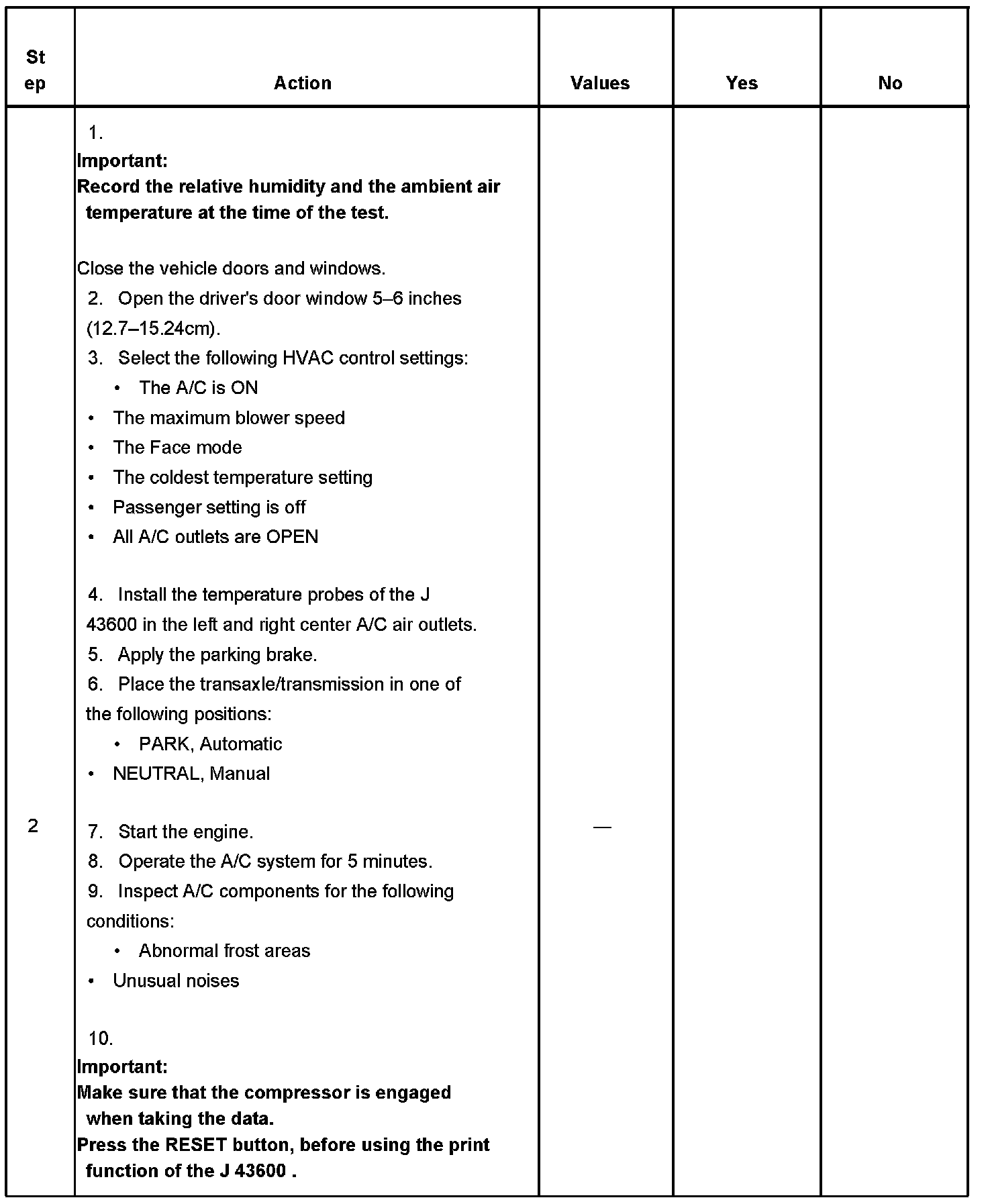 AIR CONDITIONING (A/C) SYSTEM PERFORMANCE TESTTEST DESCRIPTION