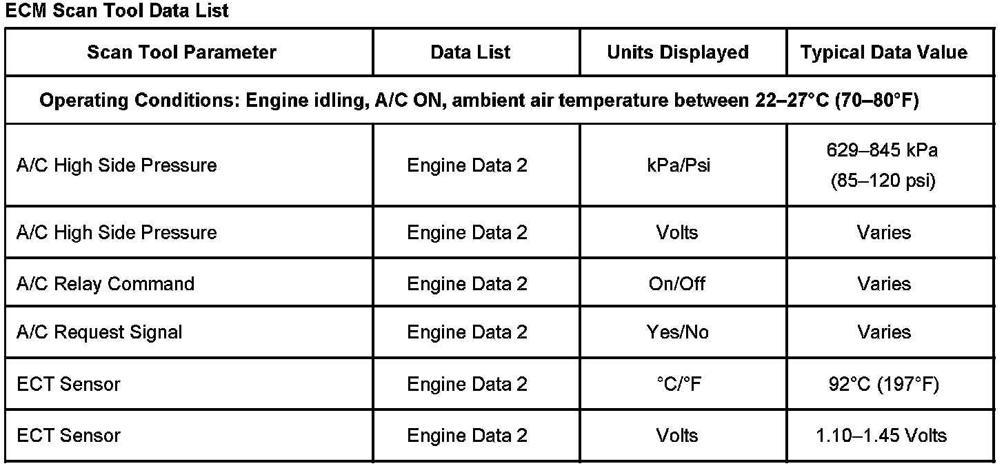 Scan Tool Data List - ECM