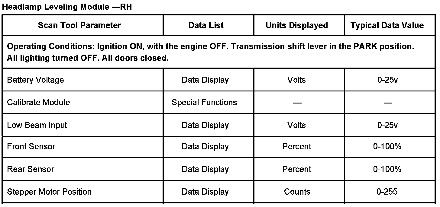 Headlamp Leveling Module - RH Scan Tool Data List: