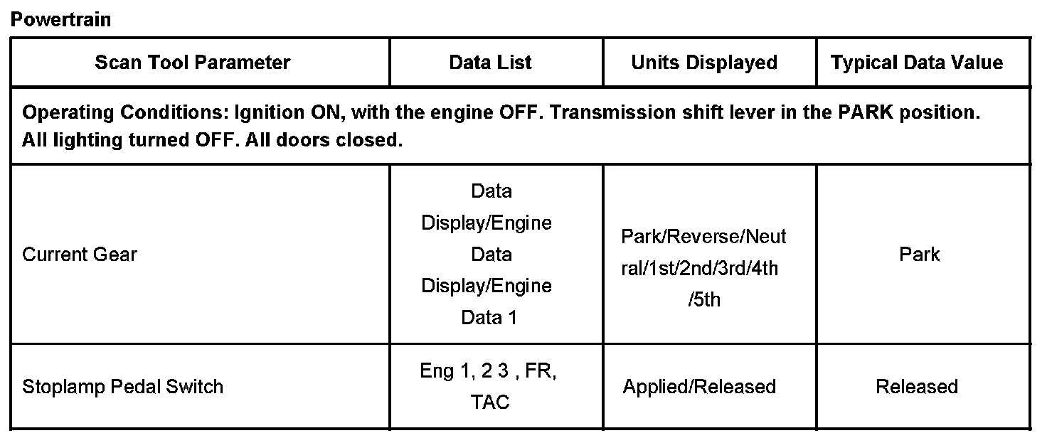 Powertrain Scan Tool Data List: