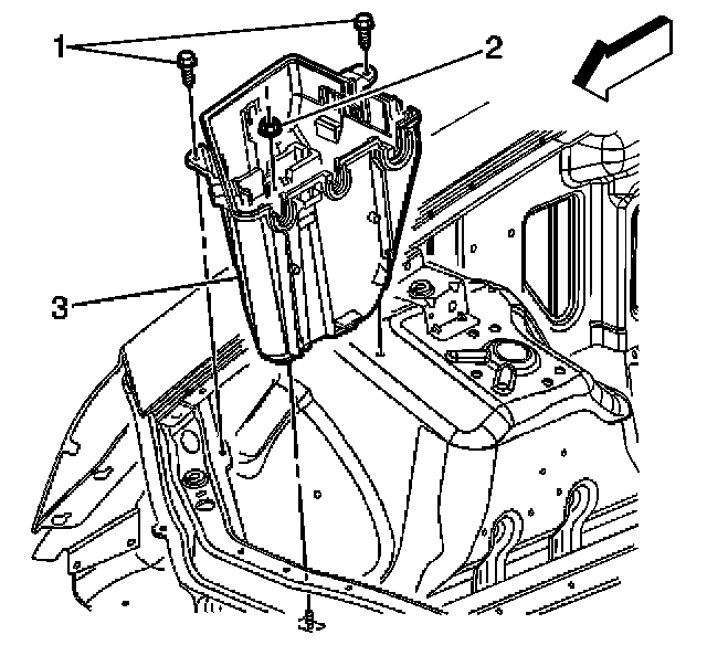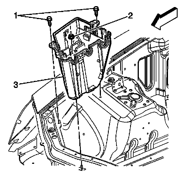 1. Install fasteners (1, 2) securing the electrical center (3) to vehicle.