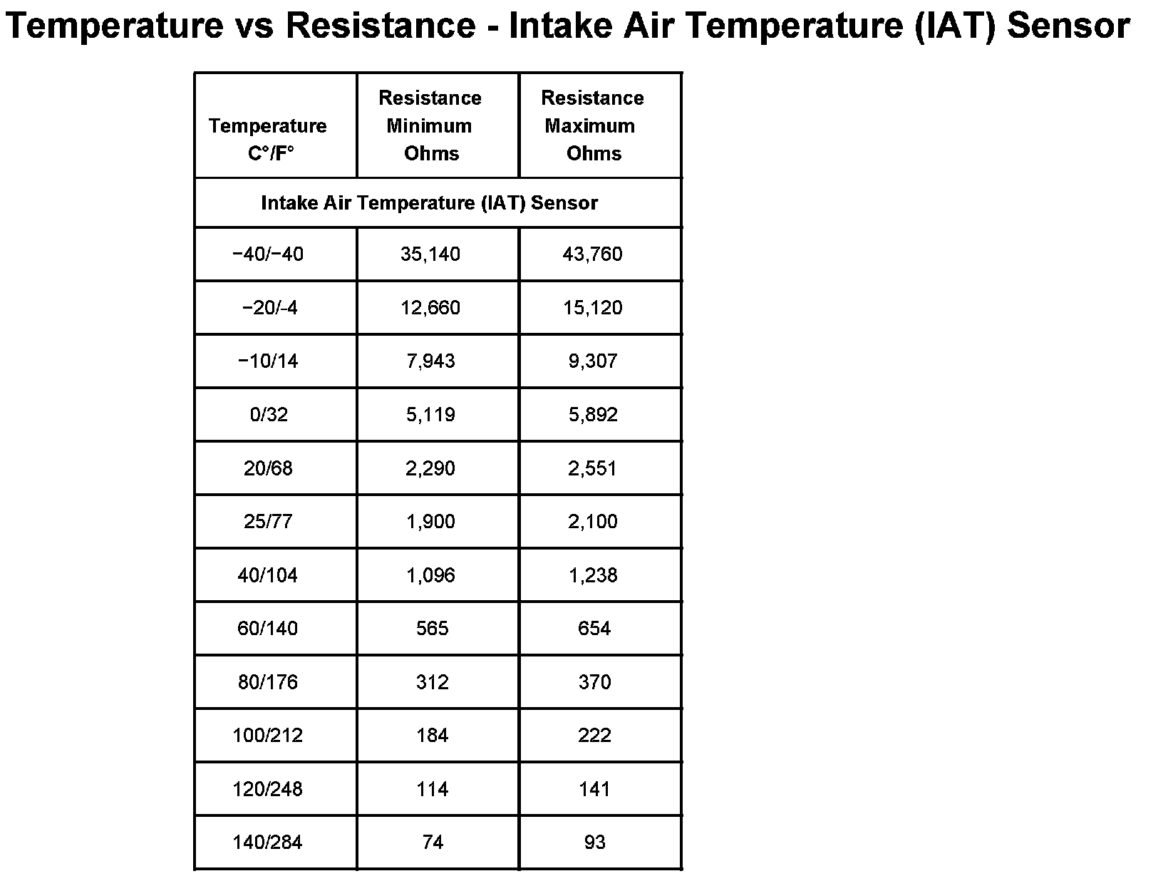 Temperature Vs Resistance - Intake Air Temperature (IAT) Sensor: