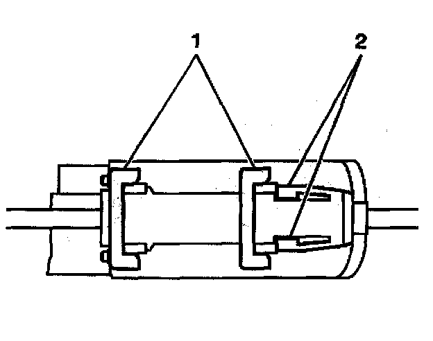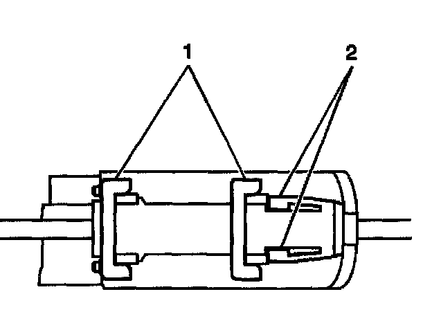 3. Push the clutch position switch retaining plate locking tabs (2) toward each other.