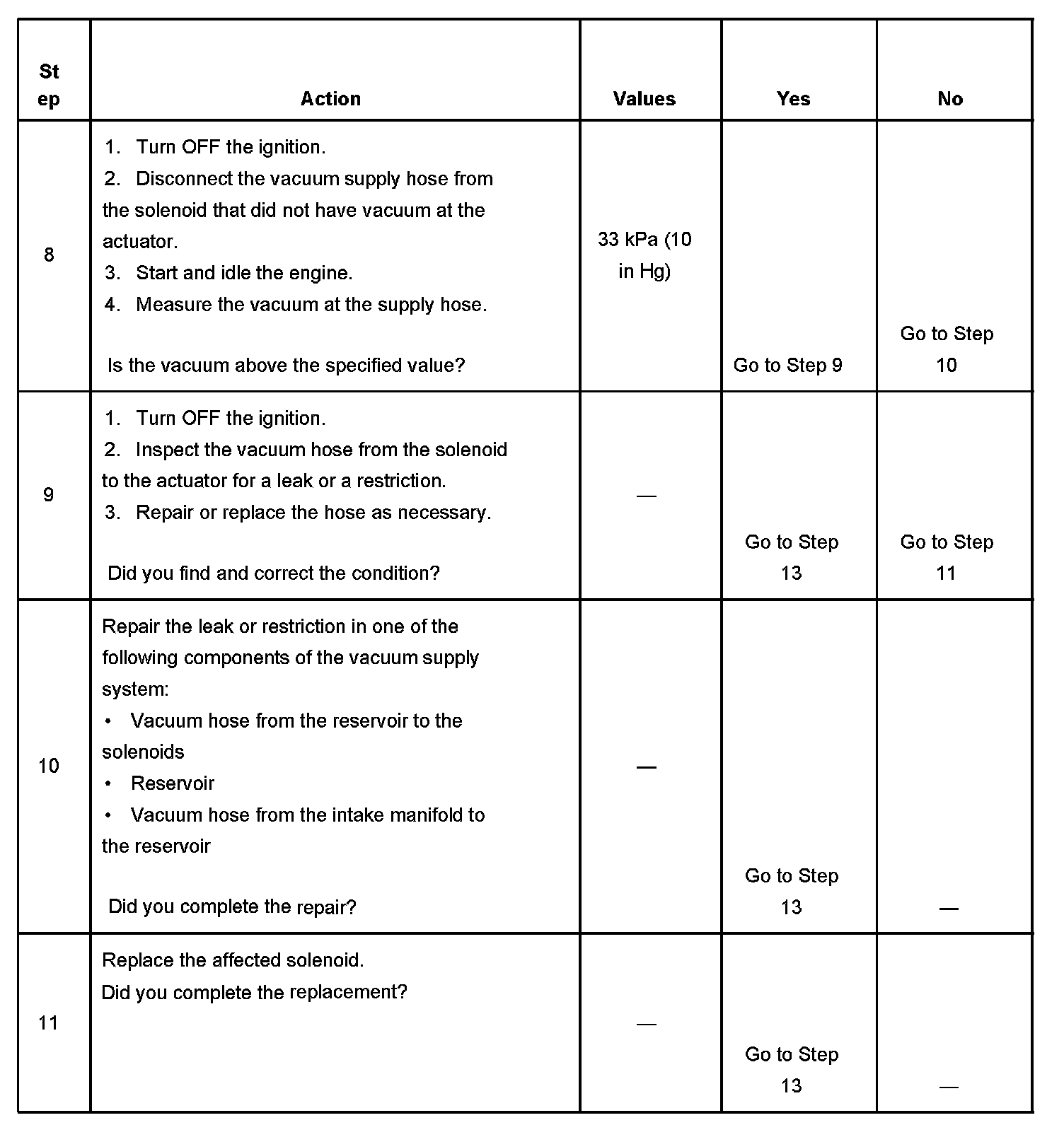 Both solenoid valves are supplied switched battery power from the engine controls power relay. Both solenoid valves have a control circuit to the ECM. The ECM controls a valve by grounding the control circuit. If a fault is detected with either of the solenoid valve control circuits, a diagnostic trouble code (DTC) will set.