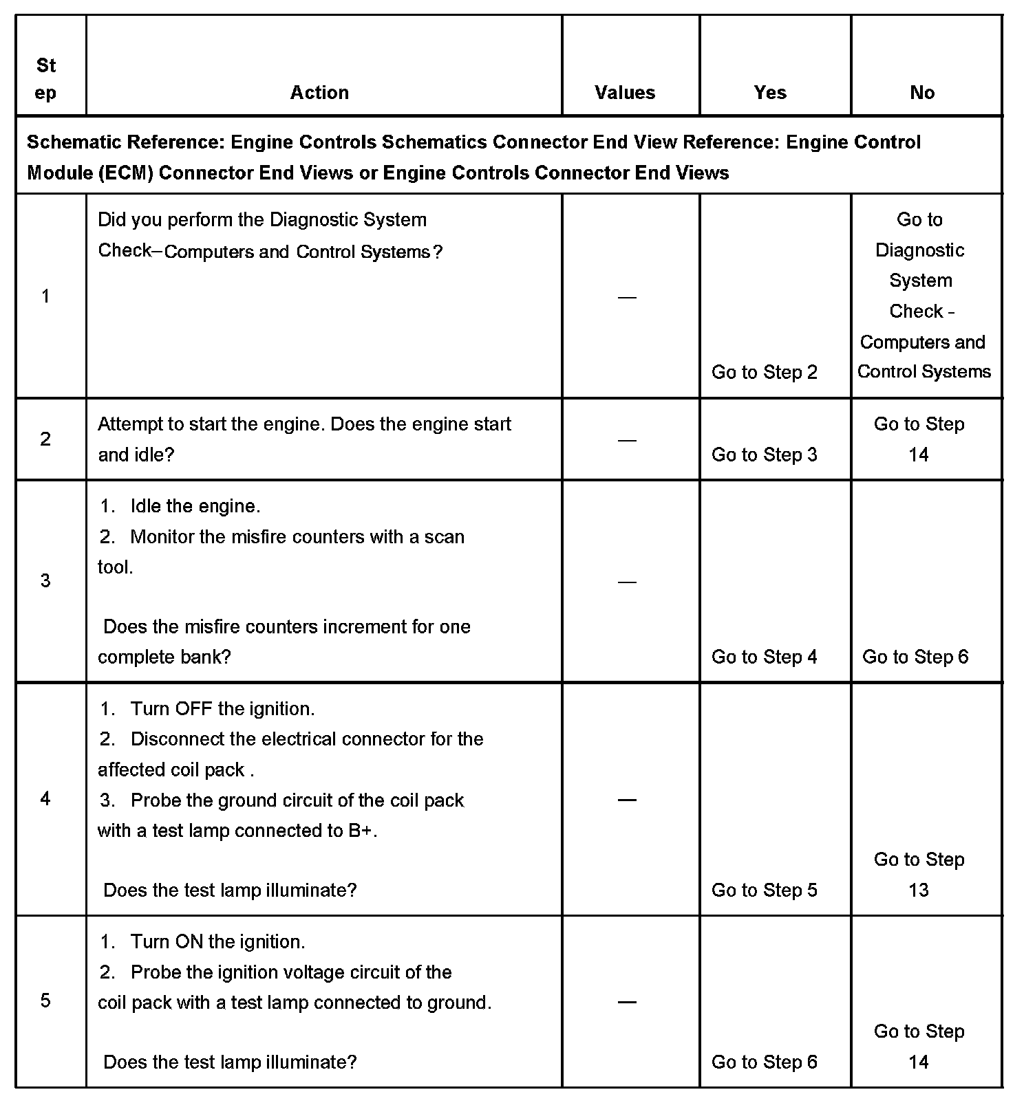10. This step is to verify the operation of the ignition coil control circuit and the driver in the ECM.