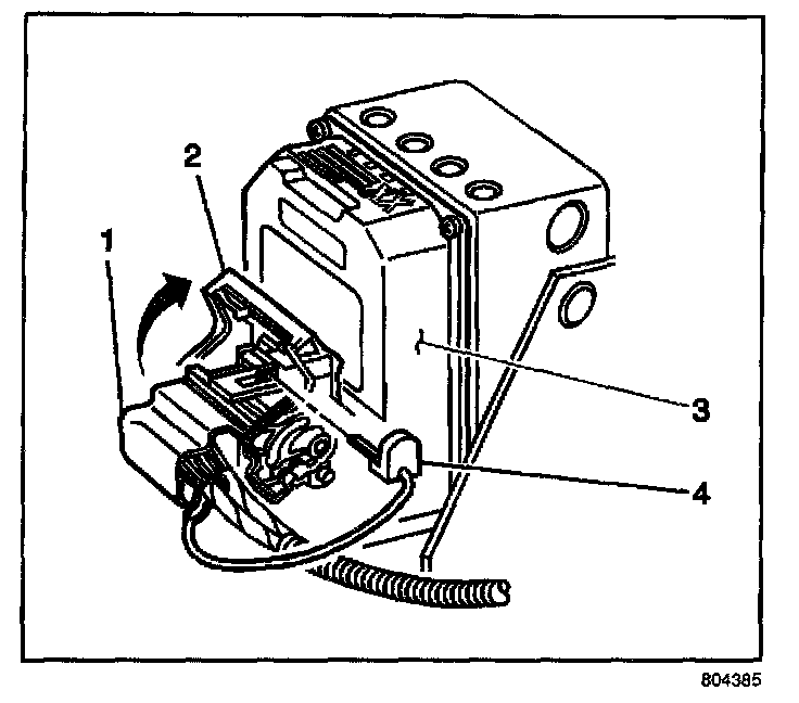 3. Make sure that the internal pump motor connector (3) is installed into the new EBCM (1) prior to EBCM replacement.