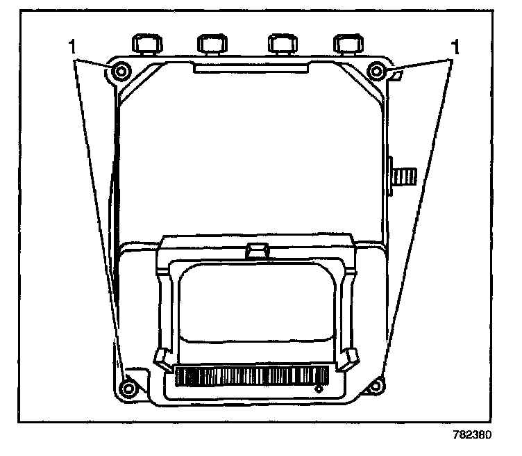 7. Remove and discard the 2 upper EBCM to brake pressure modulator valve (BPMV) screws (1).