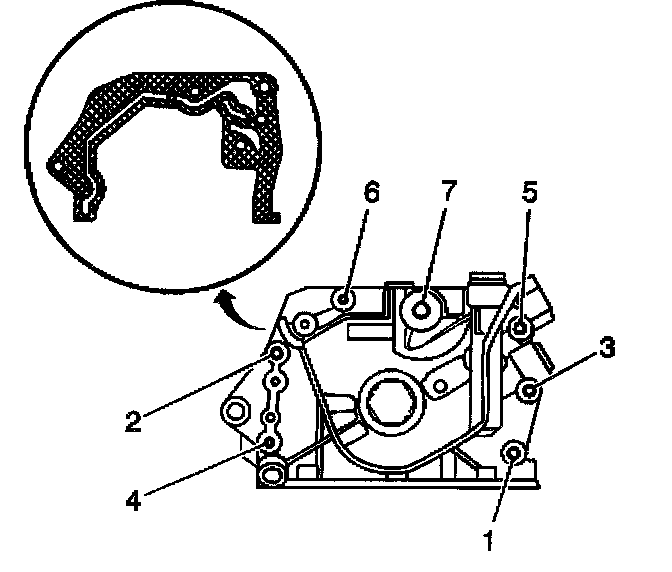 Tighten the Oil Pump Bolts in sequence 12 Nm (106 inch lbs.)