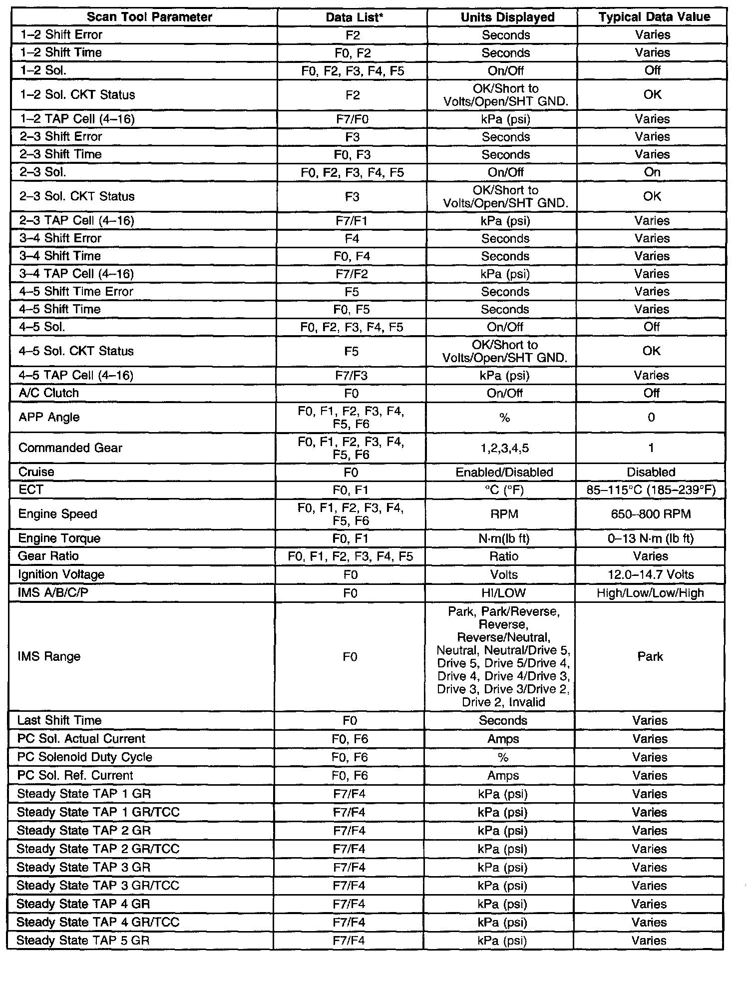 Only the parameters listed below are used for diagnosing. If a scan tool displays other parameters, the values are not recommended by General Motors for use in diagnosis.
