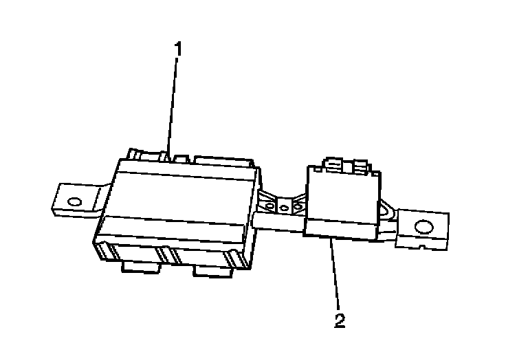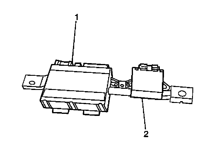 1. Install the heated seat control module (2) to the module bracket and install the memory seat module fasteners.