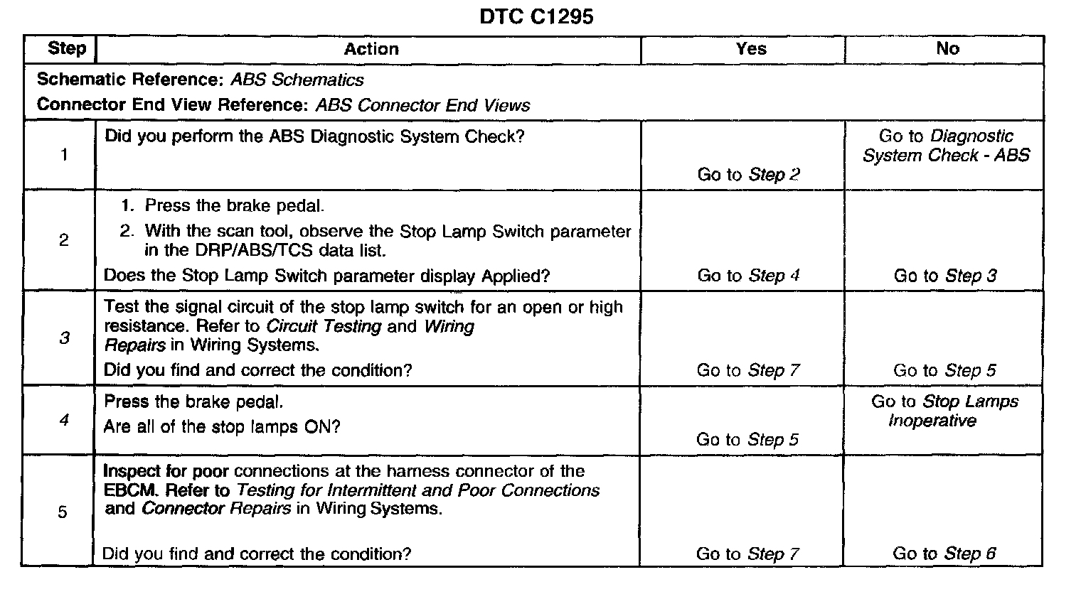 3. This DTC detects an open stop lamp switch signal circuit from the stoplamp side of the splice pack to the EBCM.