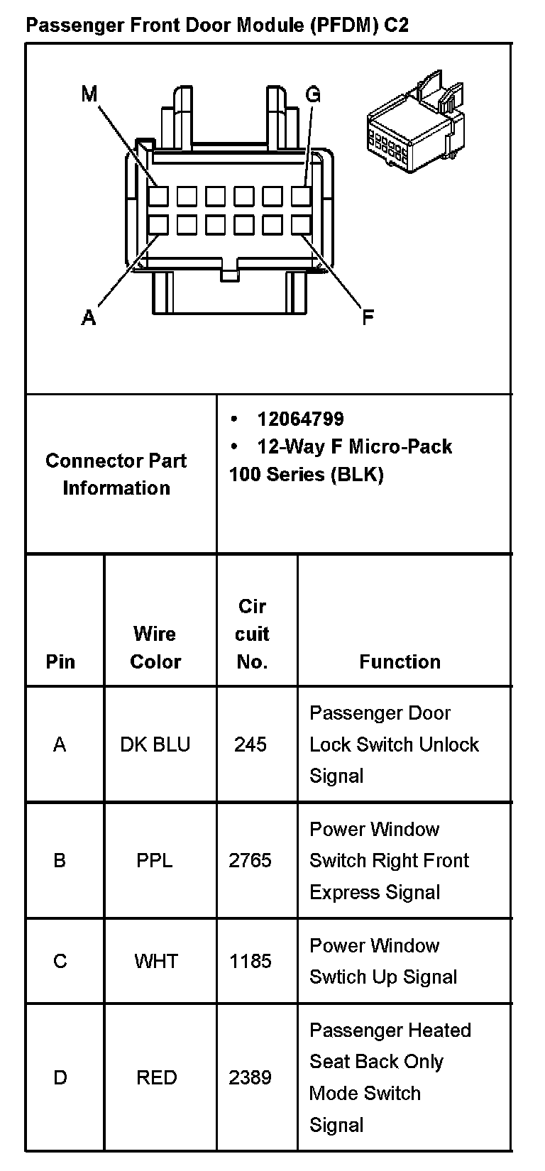 Passenger Front Door Module (PFDM) C2 Part 1: