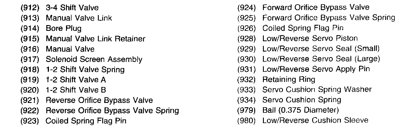 Lower Control Valve Body Assembly (continues):