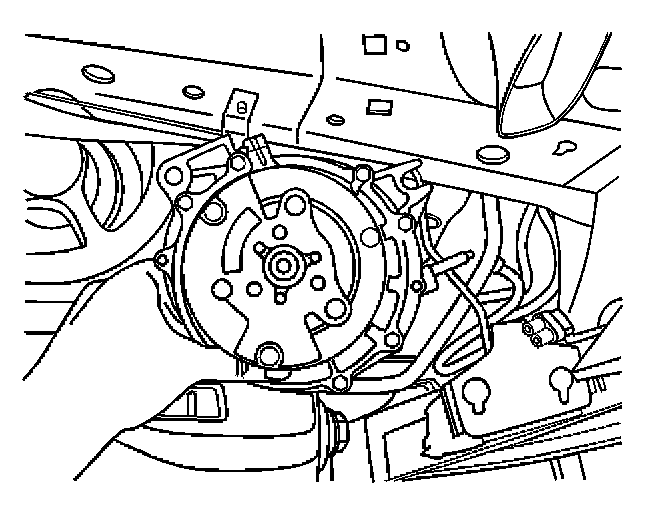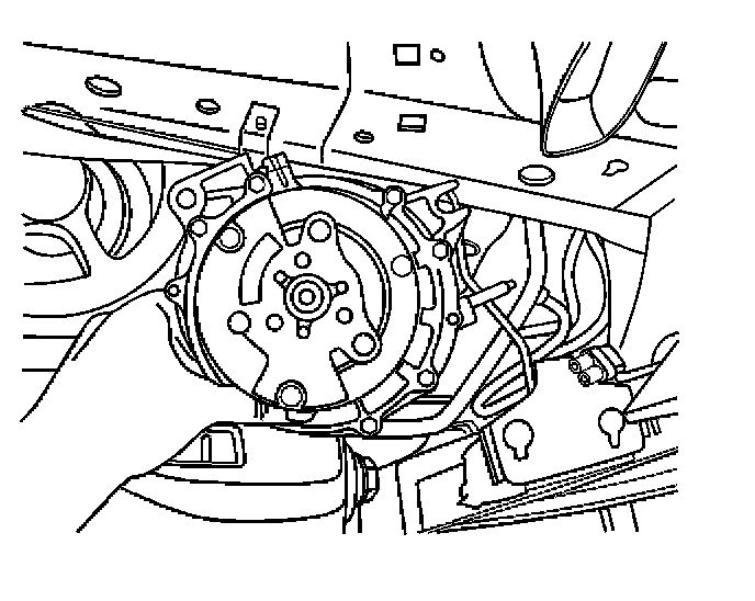 14. Rotate the A/C compressor in order to allow the A/C compressor to exit through the wheelhouse opening.