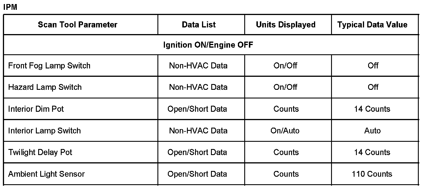 Scan Tool Data List - Instrument Panel Module (IPM)
