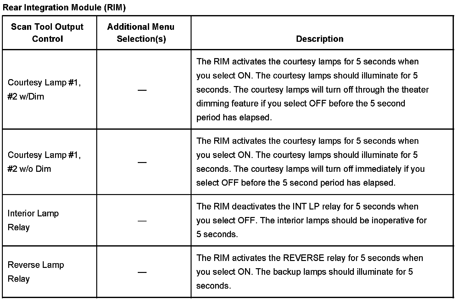 Scan Tool Output Controls - Rear Integration Module (RIM):