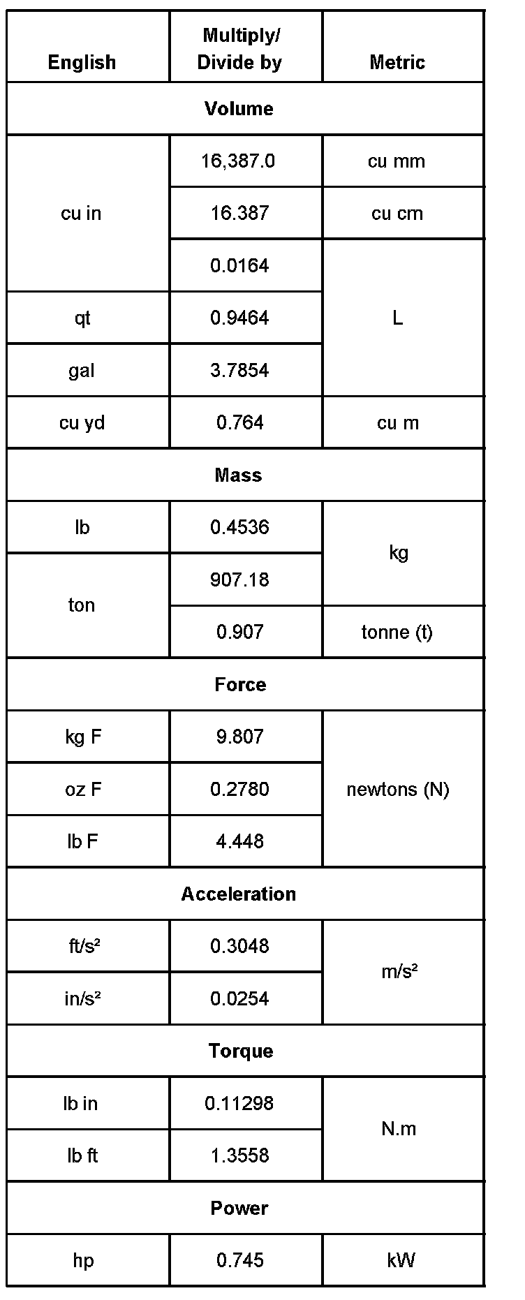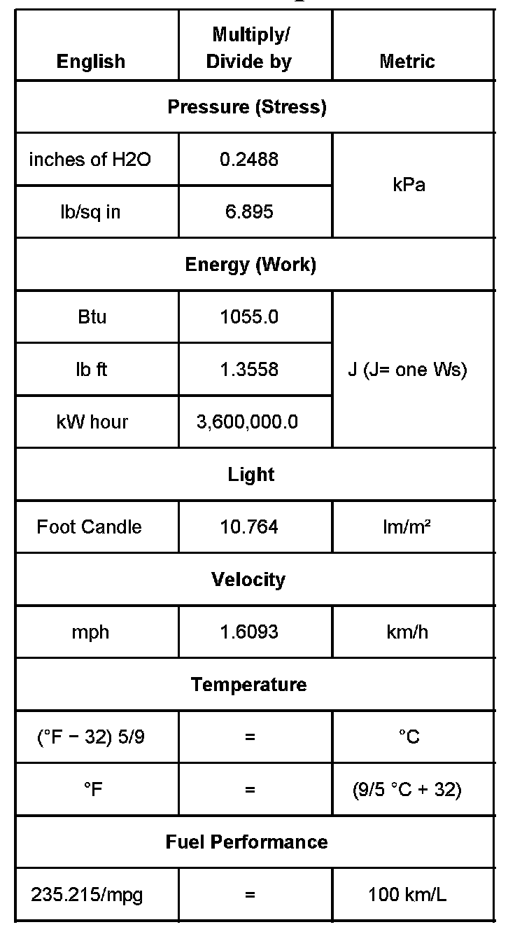 Conversion - English/Metric