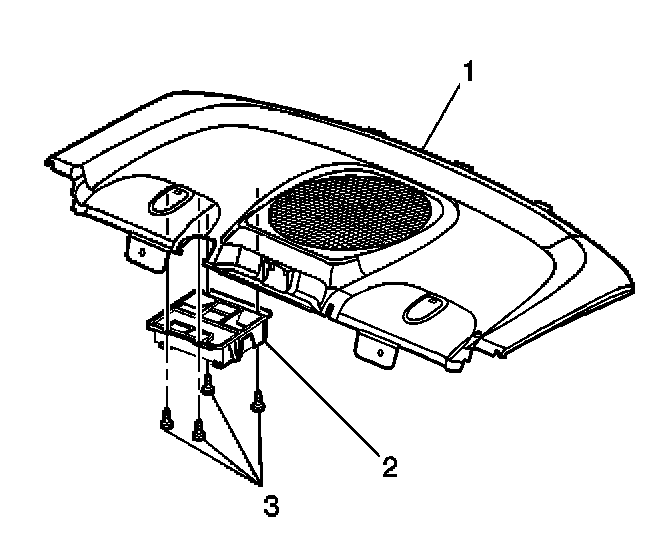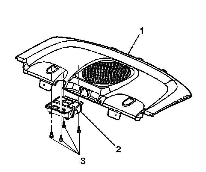 3. Remove the four fasteners (3) retaining the cellular telephone module and bracket assembly (2) to the rear shelf trim panel (1).