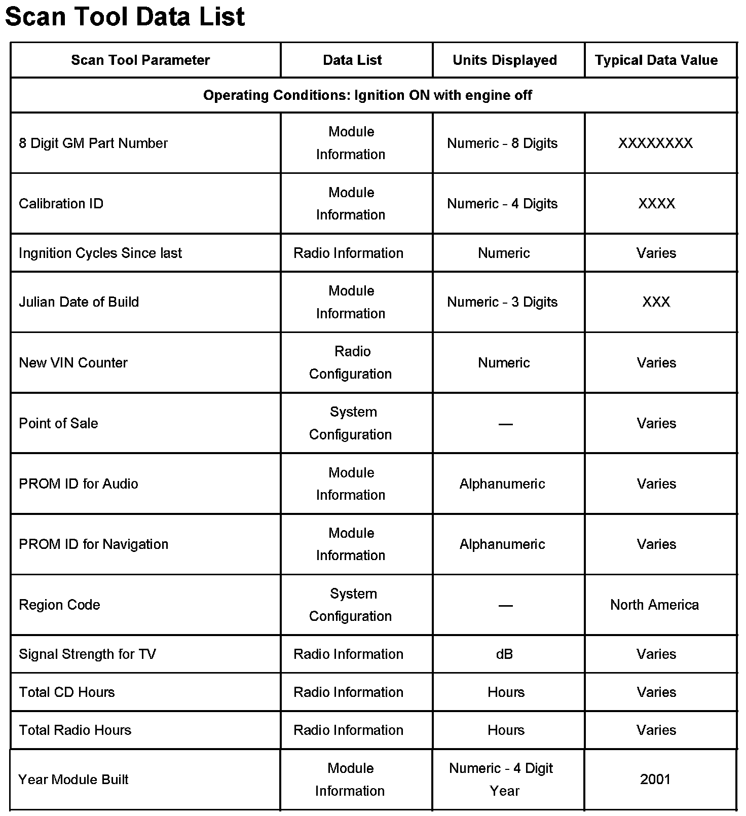 Scan Tool Data List: