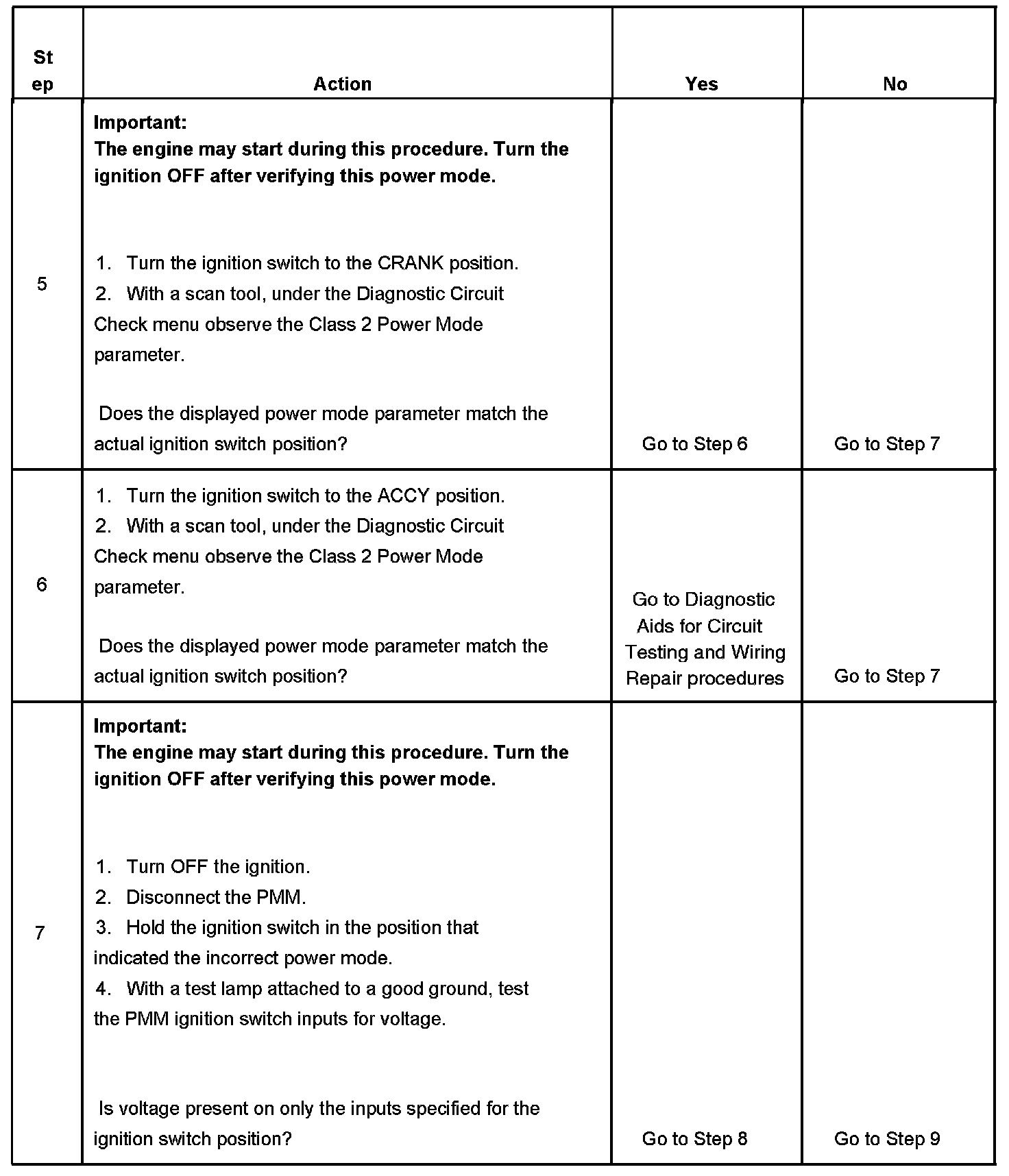 7. This step tests for battery voltage on the signal circuits that are not required.