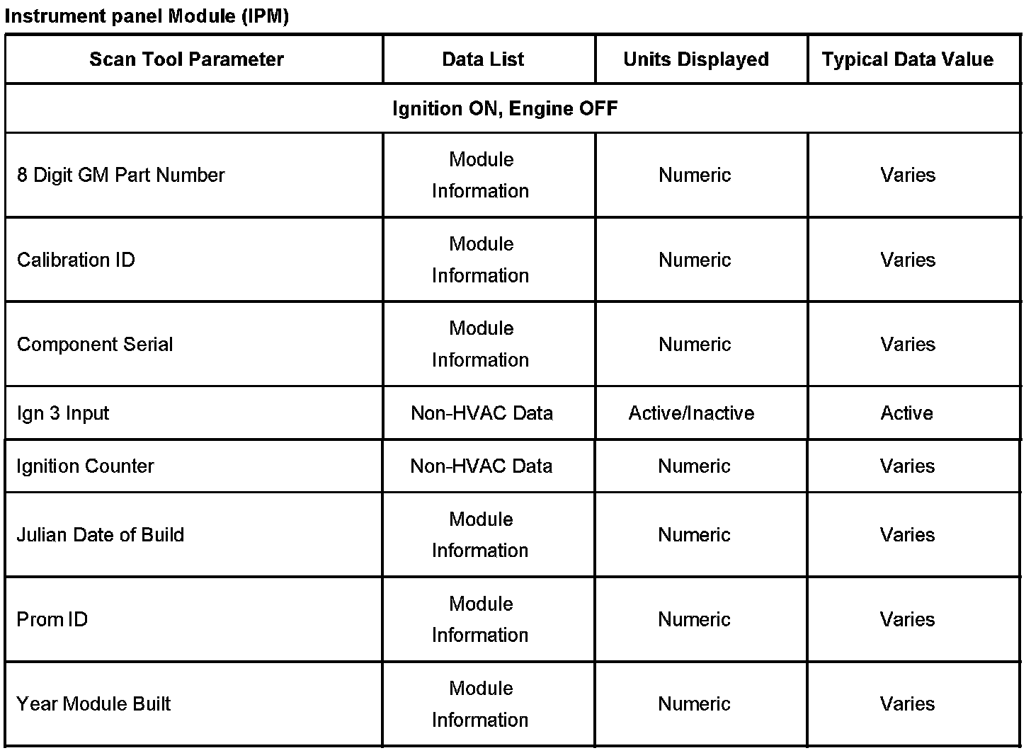 Scan Tool Data List - Instrument Panel Module (IPM)