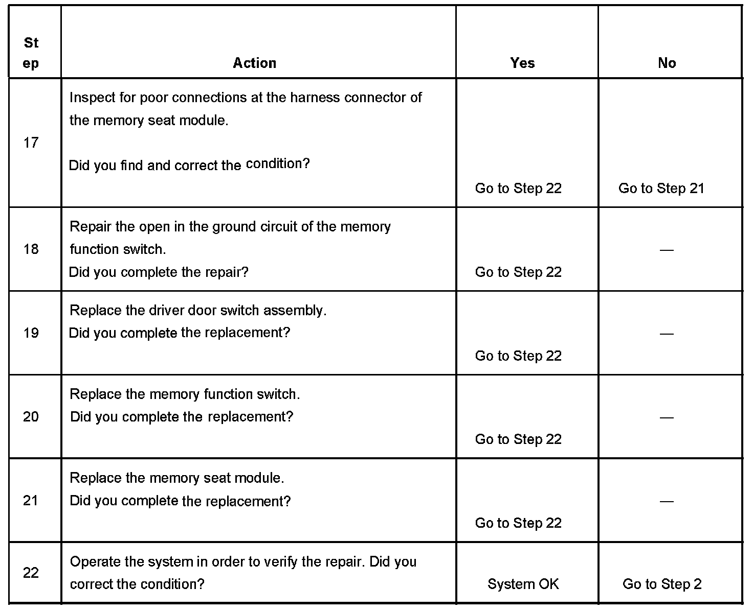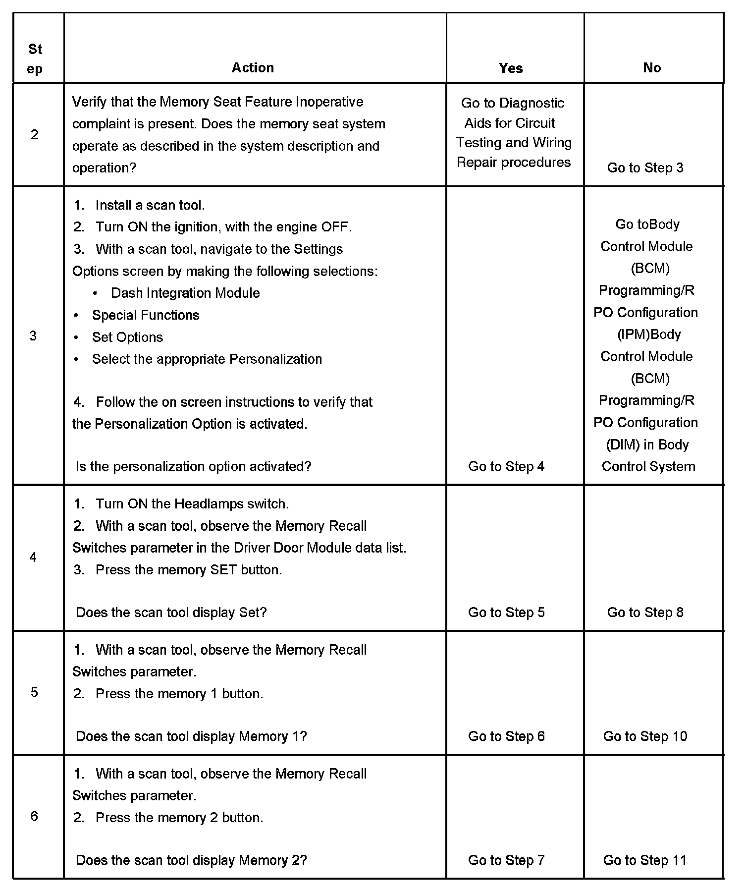 MEMORY SEAT FEATURE INOPERATIVE