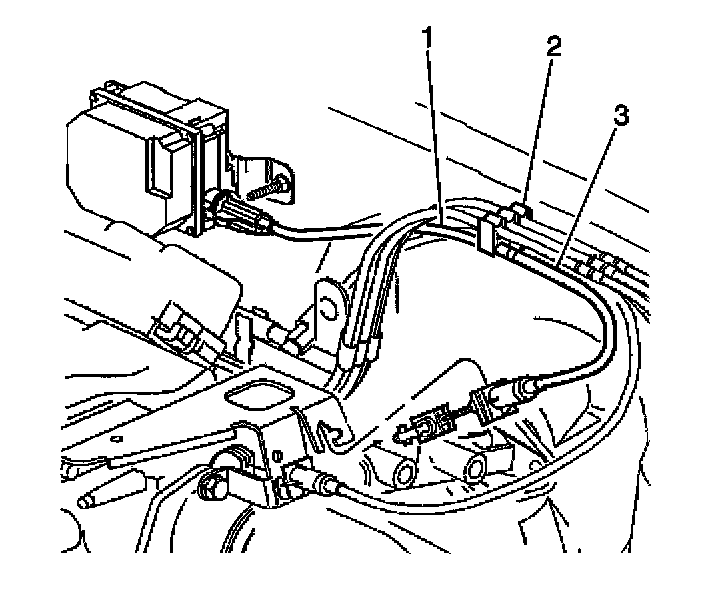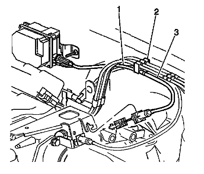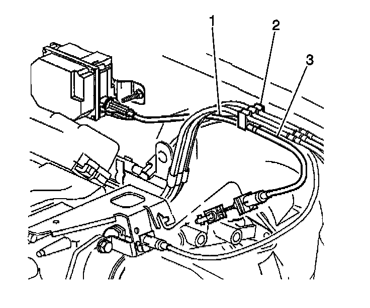 2. Remove the cruise control cable (1) from the cruise control module connector (3).