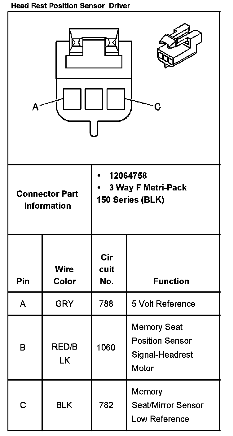 Head Rest Position Sensor - Driver: