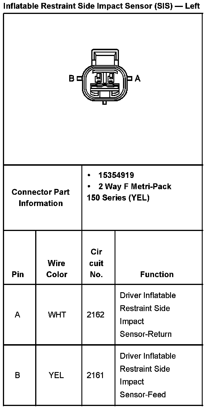Inflatable Restraint Side Impact Sensor (SIS) - Left:
