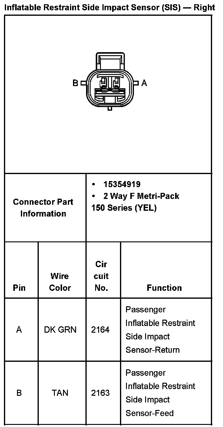 Inflatable Restraint Side Impact Sensor (SIS) - Right: