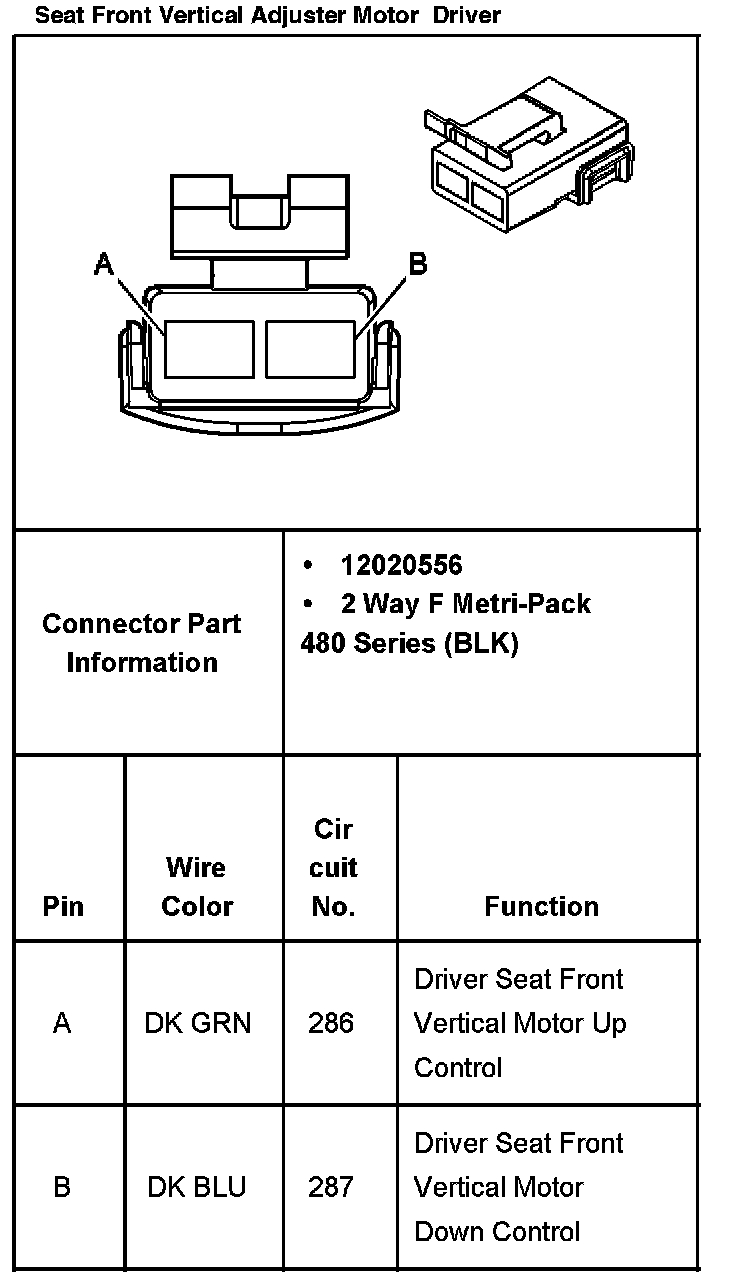 Seat Front Vertical Adjuster Motor - Front Passenger: