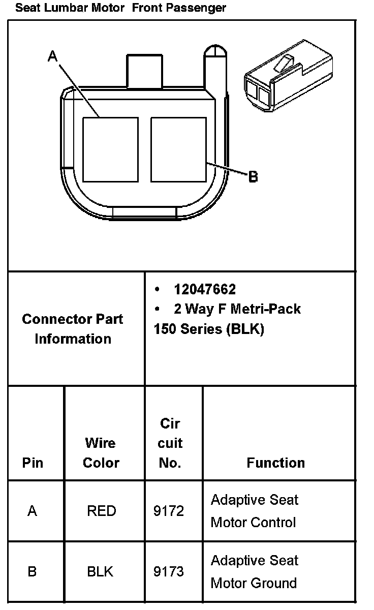 Seat Lumbar Horizontal Motor - Front Passenger: