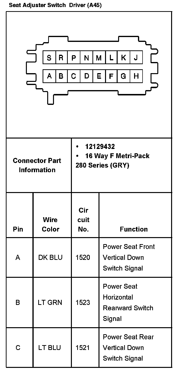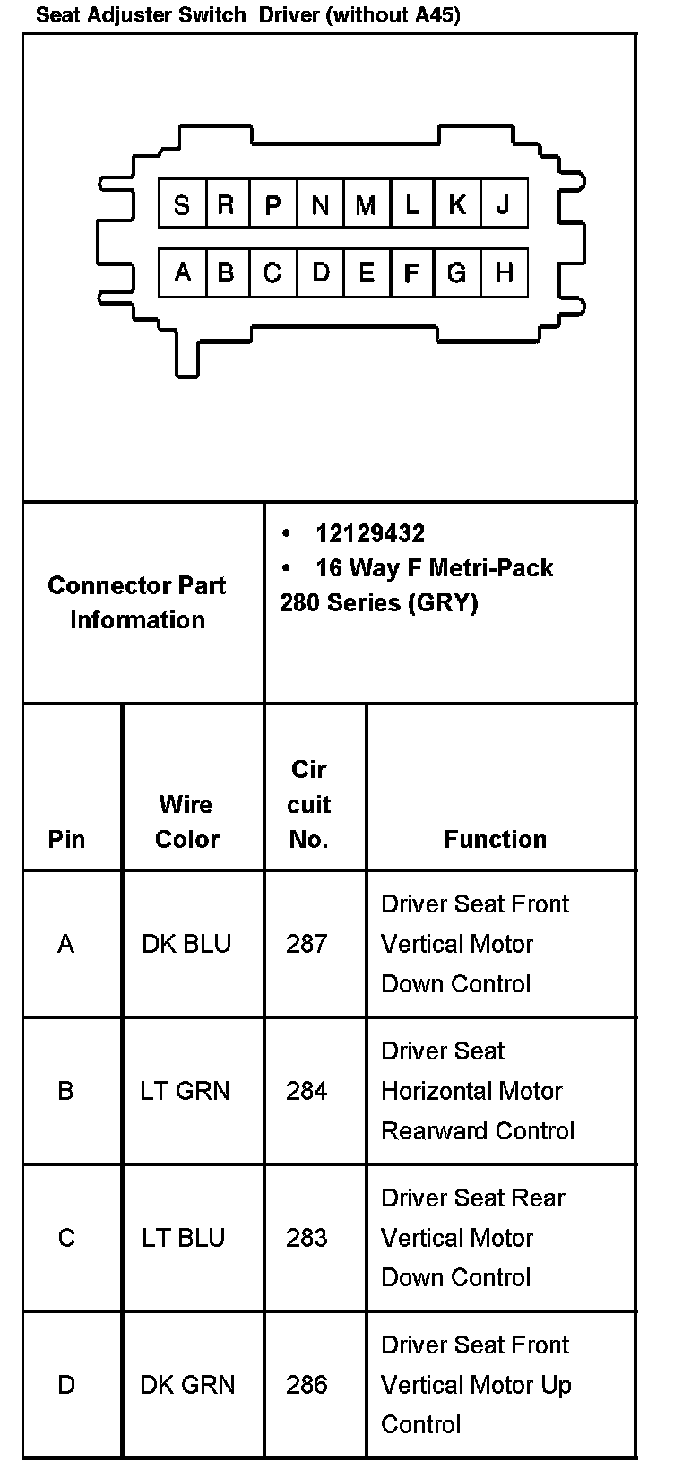 Seat Adjuster Switch Driver (With RPO Code A45) Part 1: