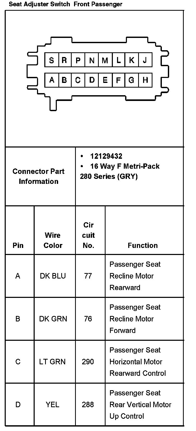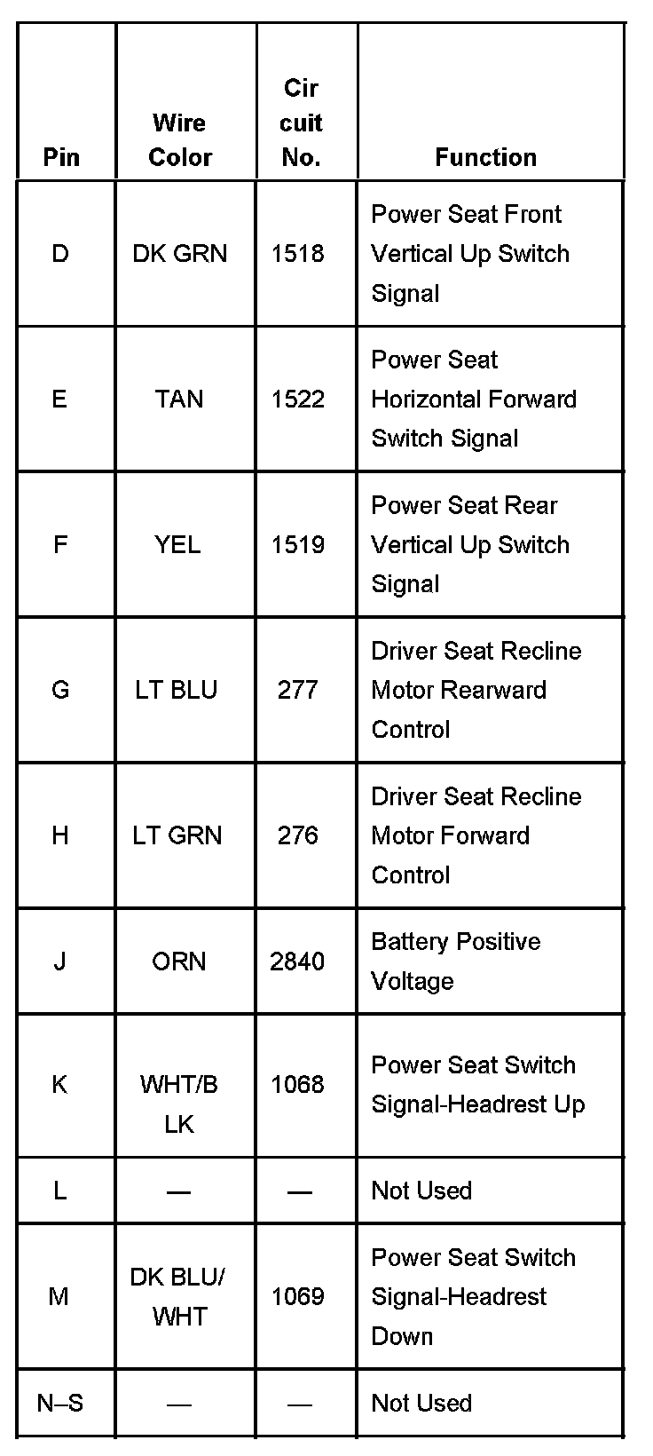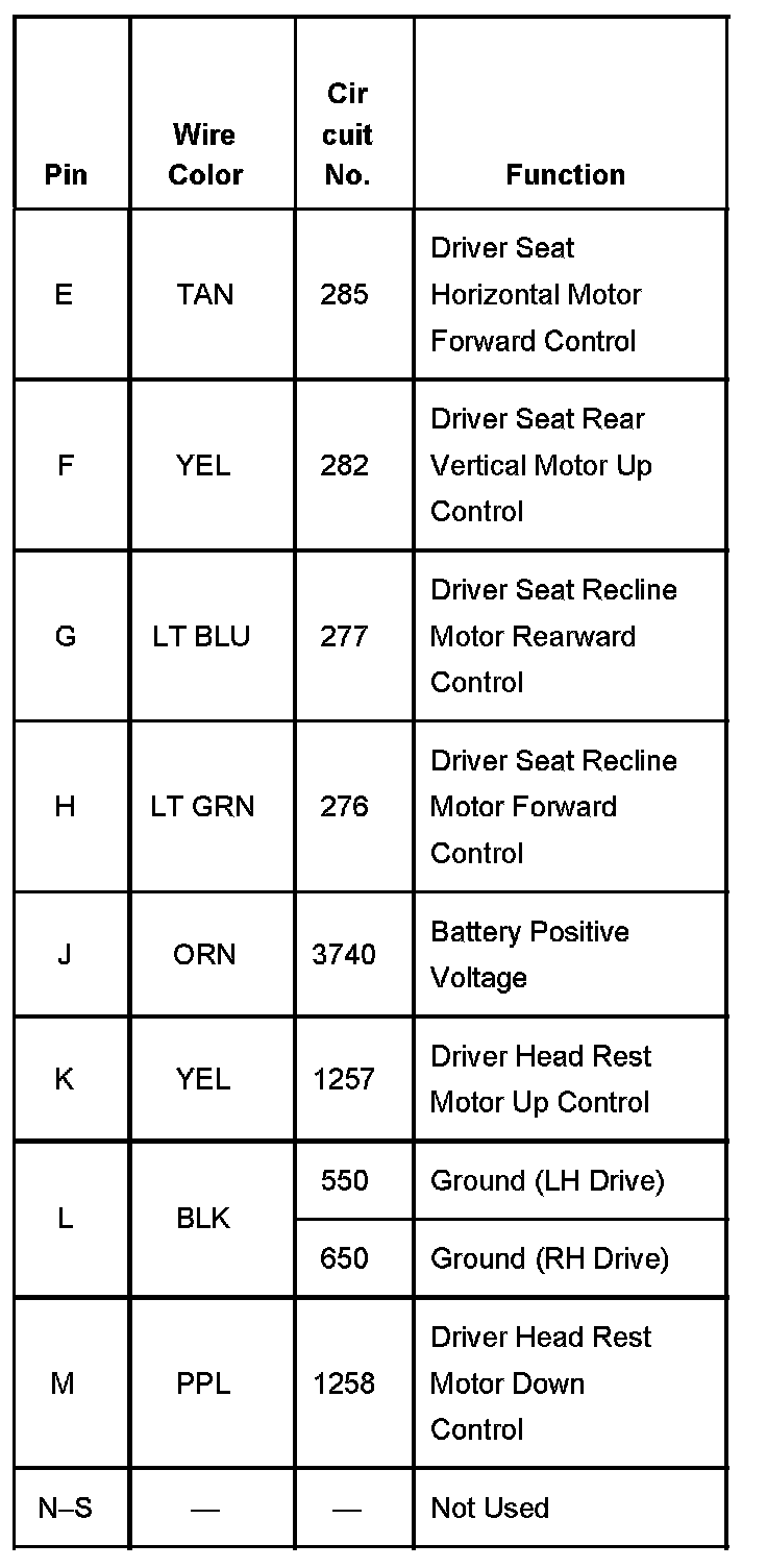 Seat Adjuster Switch Driver (Without RPO Code A45) Part 1: