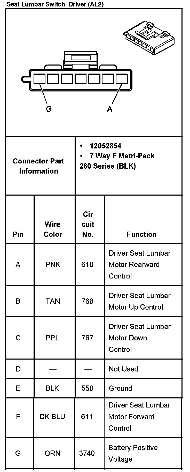 Seat Lumbar Switch - Driver (With RPO Code AL2):