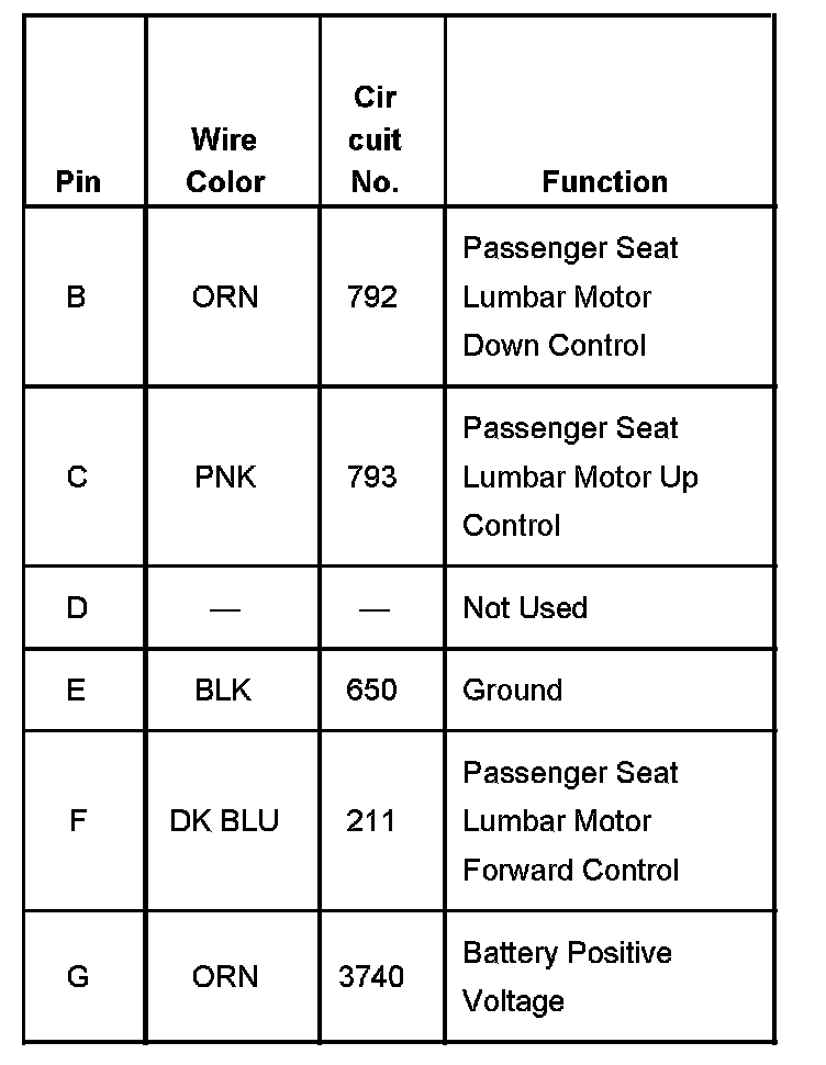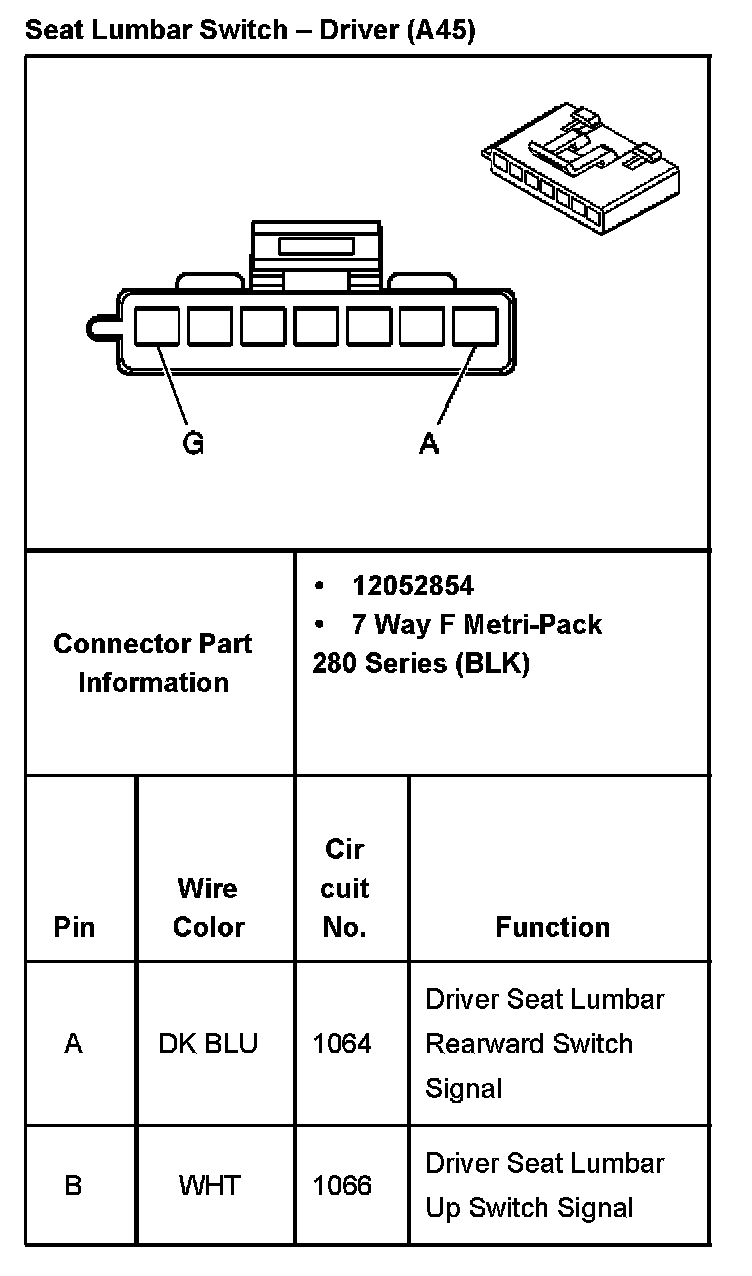 Seat Lumbar Switch - Driver (With RPO Code A45) Part 2: