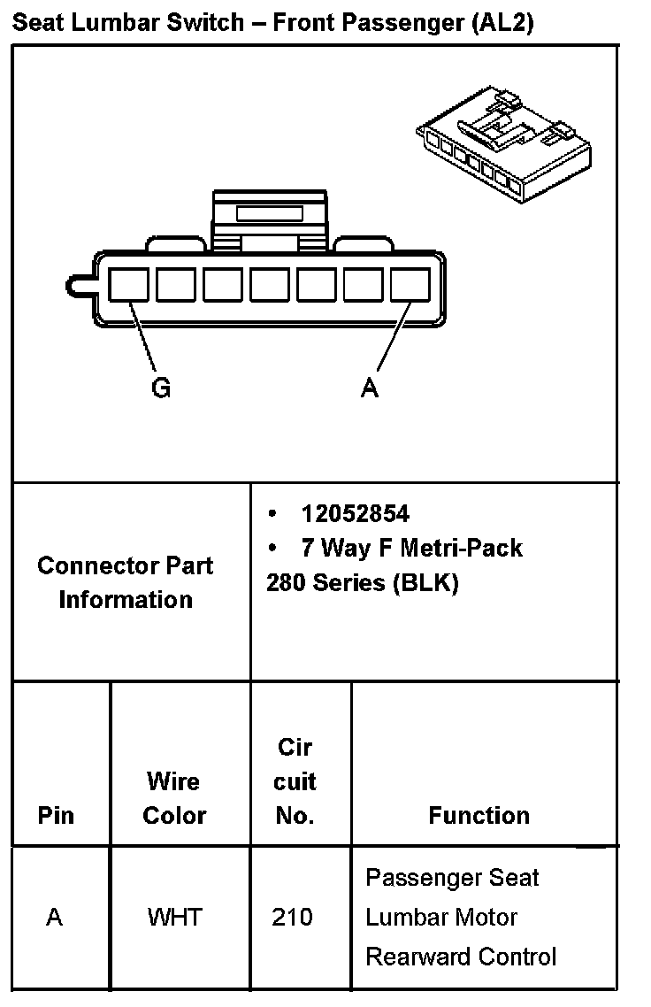 Seat Lumbar Switch - Front Passenger (With RPO Code AL2) Part 1:
