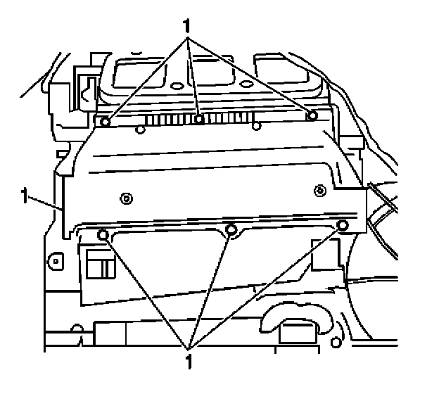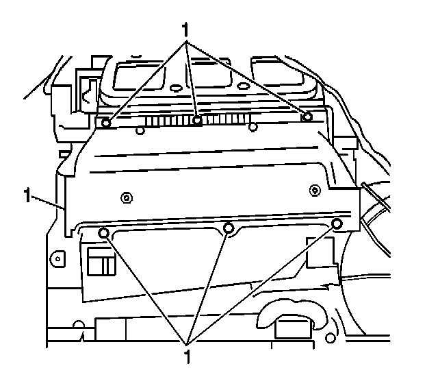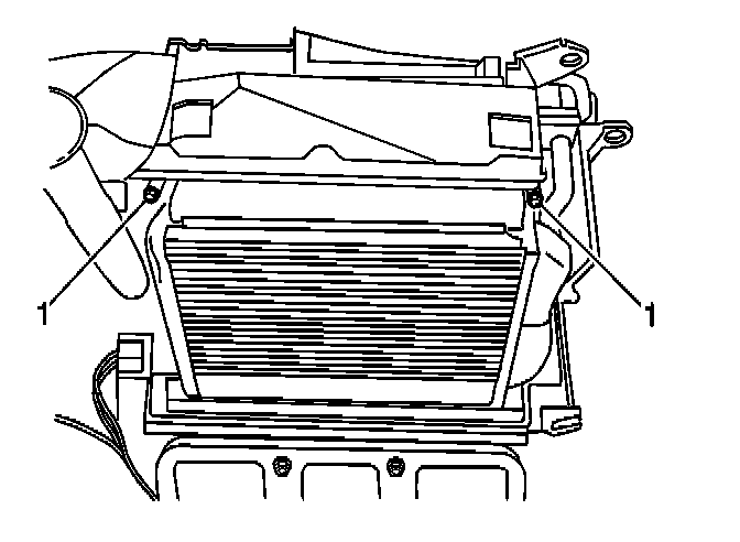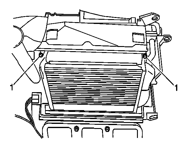 5. Remove the heater core retaining fasteners (1).