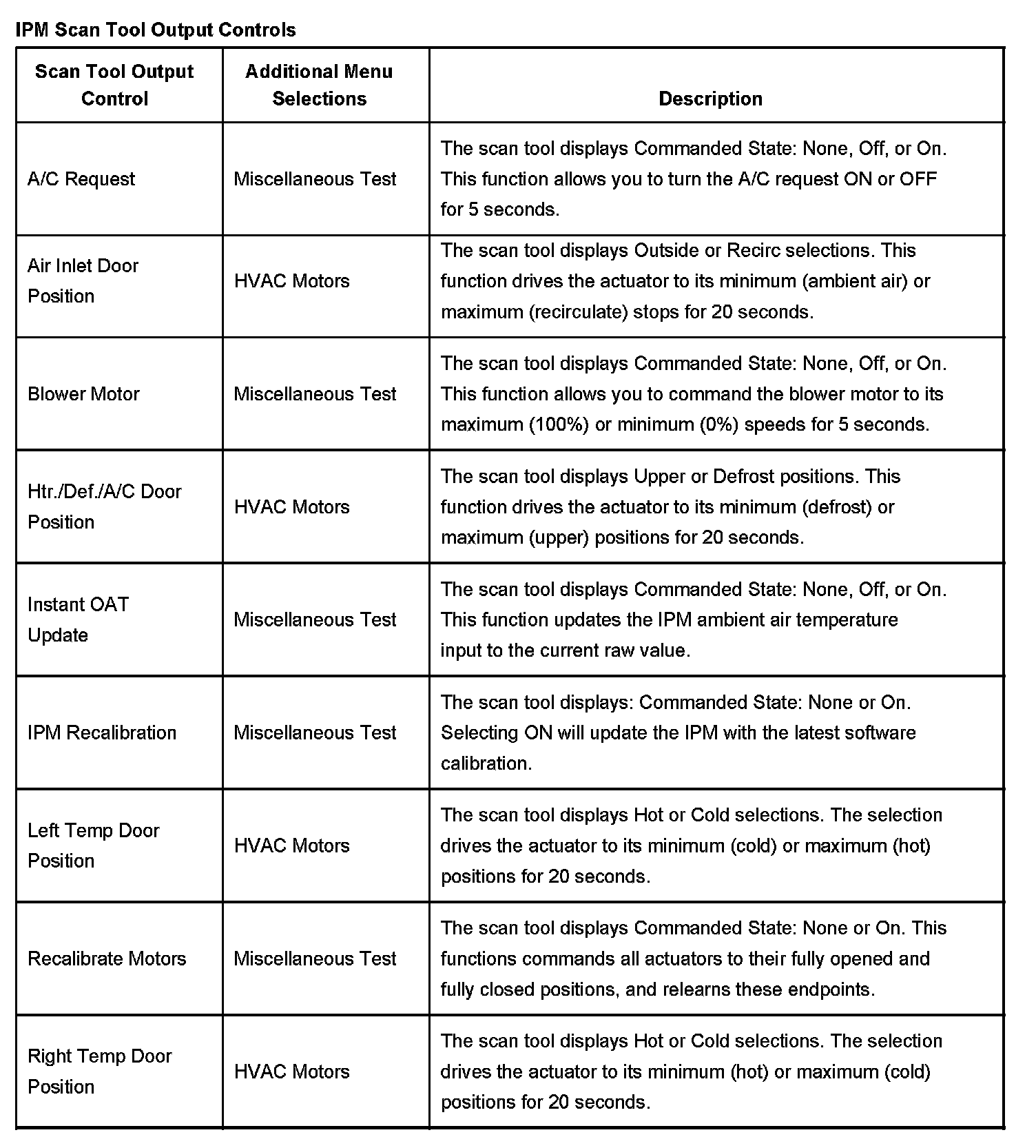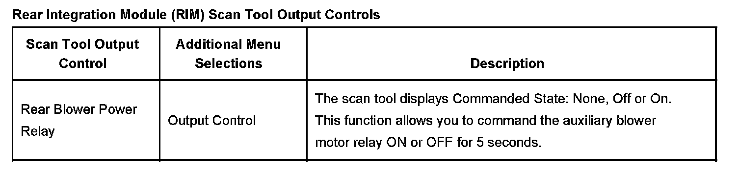 Rear Integration Module (RIM) Scan Tool Output Controls: