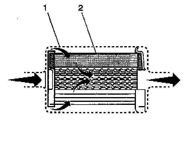 The fuel filter is located on the fuel feed pipe, between the fuel pump and the fuel injectors. The paper filter element (2) traps particles in the fuel that may damage the fuel injection system. The filter housing (1) is made to withstand maximum fuel system pressure, exposure to fuel additives, and changes in temperature. There is no service interval for fuel filter replacement. Replace a restricted fuel filter.