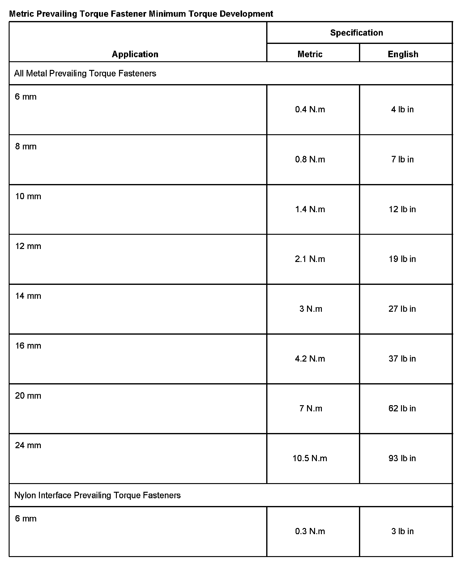 Metric Prevailing Torque Fastener Minimum Torque Development Part 1: