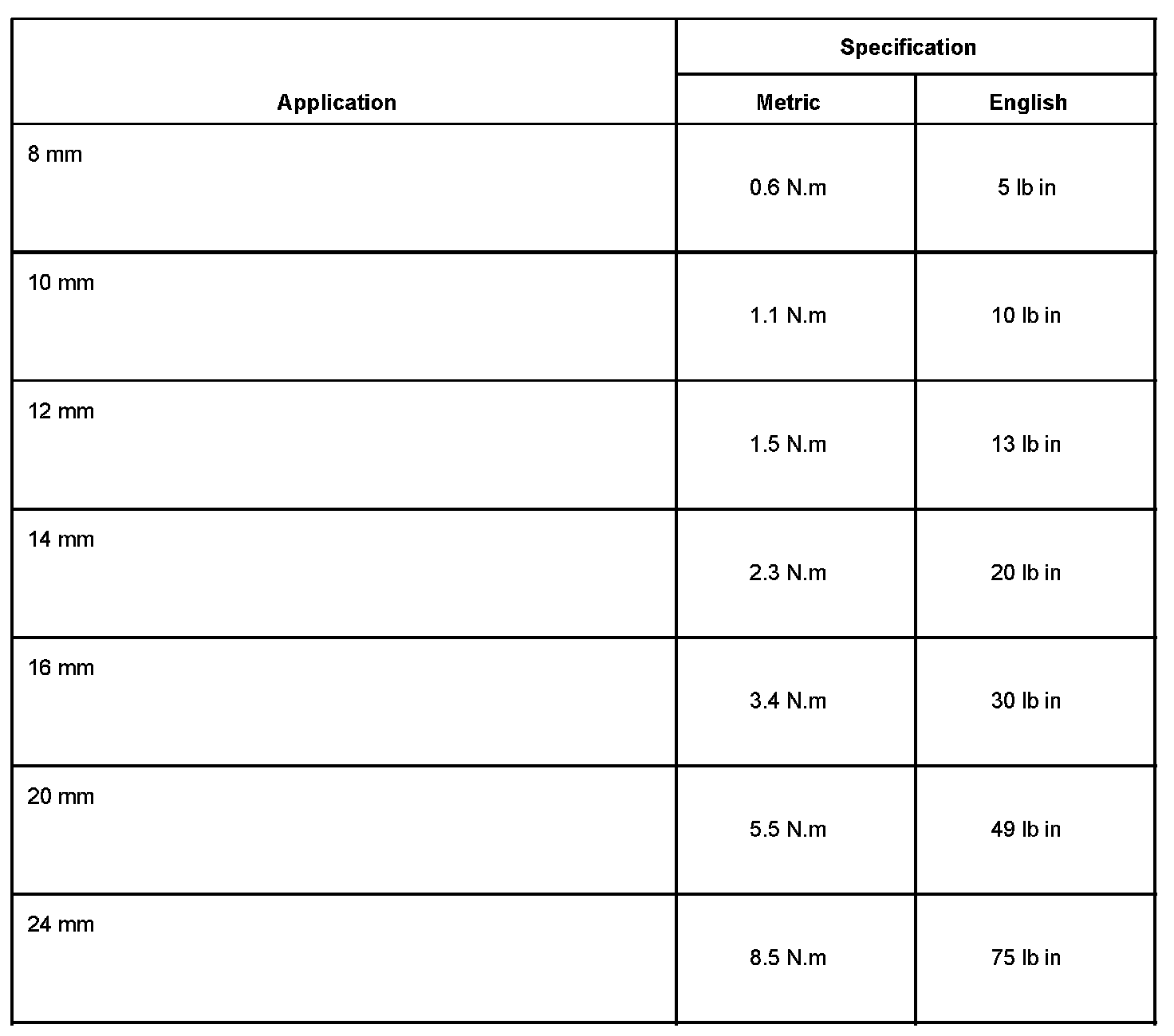 - The fastener develops the specified minimum torque against its counterpart prior to the fastener seating