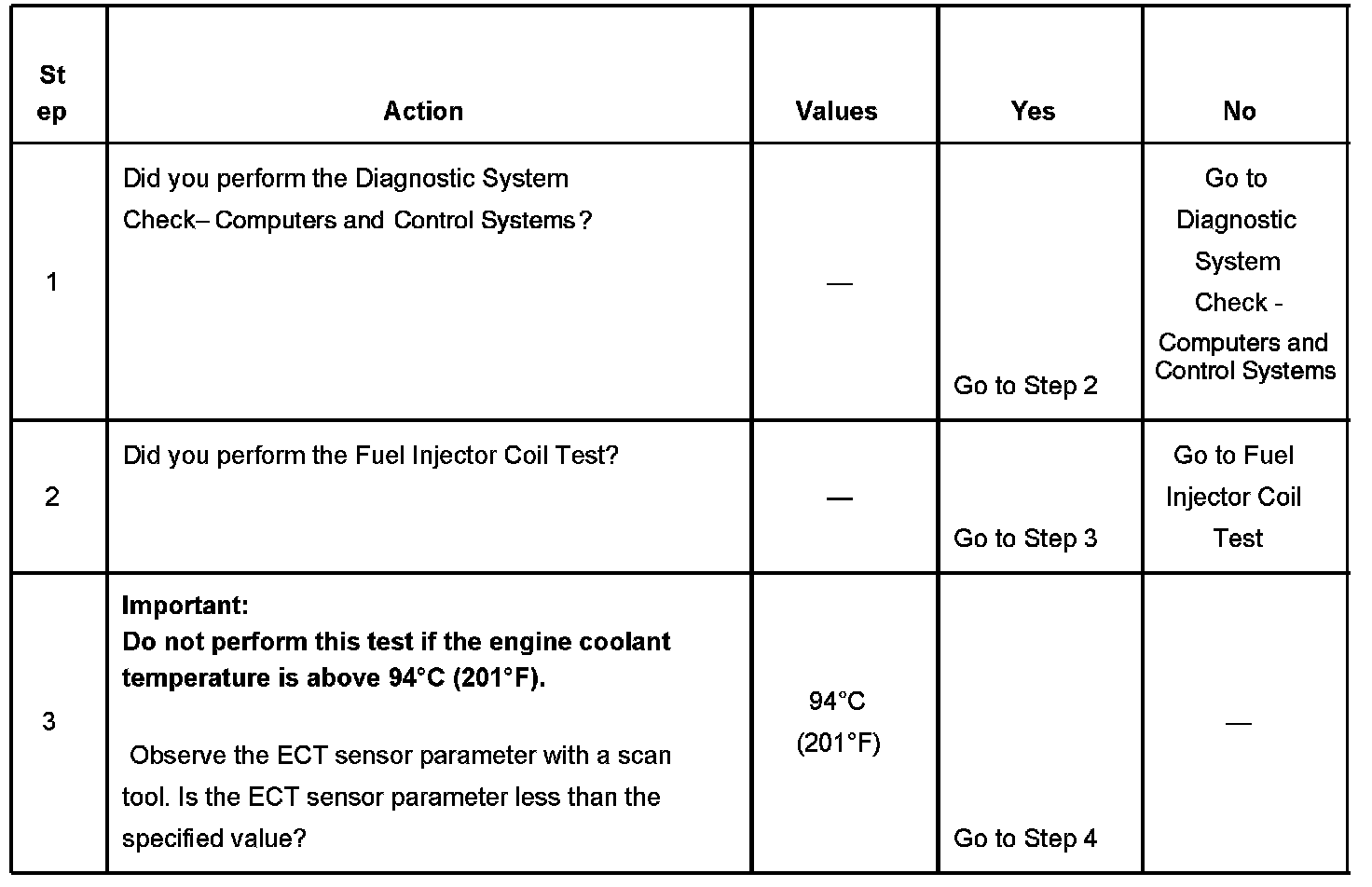 3. The engine coolant temperature must be below the operating temperature in order to avoid irregular fuel pressure readings due to hot soak fuel boiling.