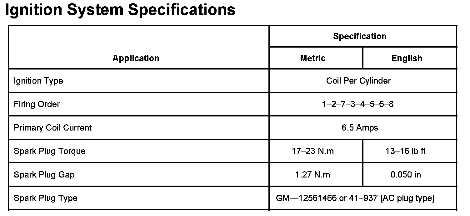 Ignition System: Specifications